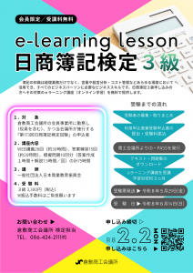 「第173回日商簿記検定試験(令和8年6月14日施行)」3級受験申し込みとその対策「日商簿記検定試験3級 eラーニング講座(オンライン学習)」のセット申し込みを受け付けております。