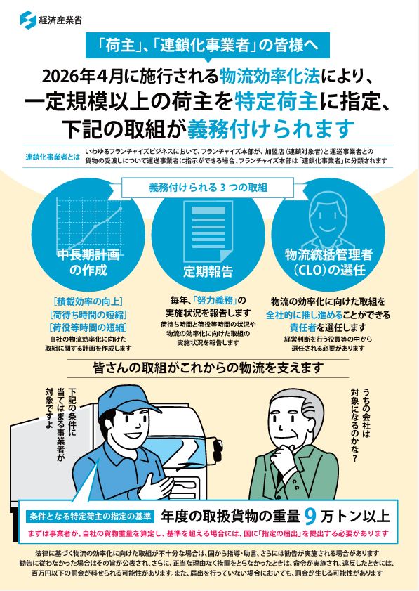 改正物流効率化法における「特定荷主等」への義務化等の施行について